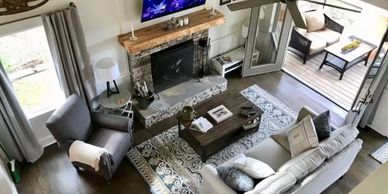 "Totally renovated. Shiplap. Granite. Stacked stone. Warm fabrics. Fluffy towels. High thread-count sheets and puffy comforters.