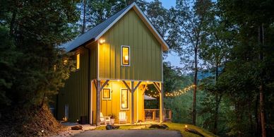 "Secluded yet mins to town! Tucked away on a private wooded lot with mountain views from every window, Sassy Cabin is a stylish retreat designed for relaxing and recharging. With magical outdoor lighting, a spacious hot tub under the stars, and minimalist interiors that let nature shine, this serene escape is just minutes from downtown Clayton -yet feels a world away. Easy to access with all paved roads. Perfect for couples & families. 3 bedrooms, all with private bath. Pet friendly." ~ Sassy Cabin